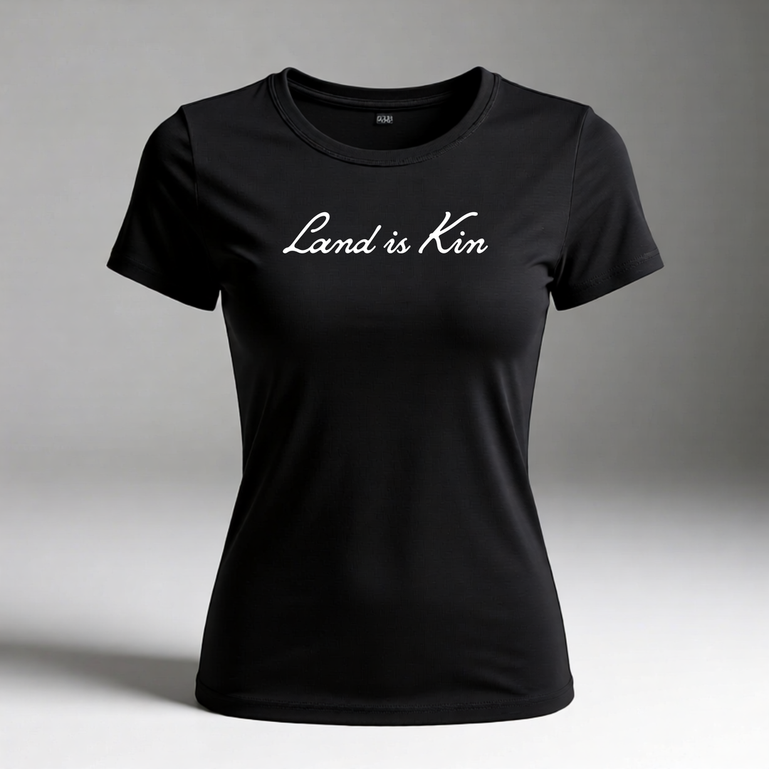 “Land Is Kin” Women's Black T-Shirt